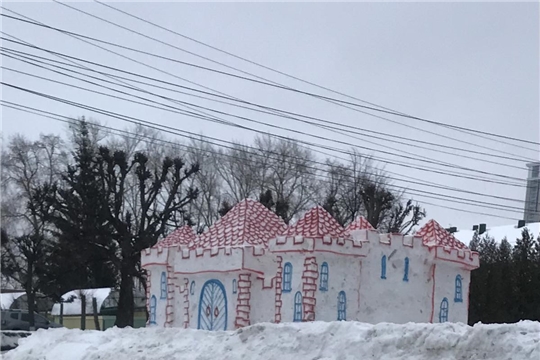 Для начала наши конкурсанты украсили входные группы еловыми гирляндами, создав там яркую сказочную атмосферу. Но главное творение неравнодушных чебоксарцев - снежная крепость с настоящими бойницами, сооружённая на радость мальчишкам и девчонкам. Работа на конкурсном "объекте" кипела с утра до вечера. Жители отметили особый труд главных строителей снежной крепости - Дмитрия Кулькова, Павла Морозова, Валерия Кудряшова. Заметно видна очень аккуратная работа водителя трактора Алексея Яковлева, без помощи которого края платформы, на которой строили крепость, не получились бы такими ровными.