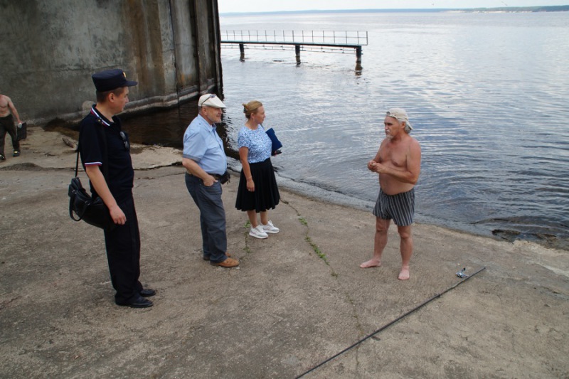 На этот раз специалисты обследовали Казанскую набережную - запрещённое для купания место. К счастью, желающих окунуться в воду здесь не обнаружено. Зато береговую линию облюбовали рыбаки: у одних улов был богатый, у других - не очень. Встречались и те чебоксарцы, которые просто прогуливались по тихой и безлюдной набережной. Им члены мобильной группы рассказали, что купаться в Чебоксарах разрешено только на четырёх пляжах: Центральном, Афанасьевском, Левобережном и Новосельском. Но даже на них нужно соблюдать меры предосторожности - не заплывать за буйки, не купаться в нетрезвом виде, не устраивать в оде игры, связанные с нырянием, захватом рук, ног, головы купающегося.
