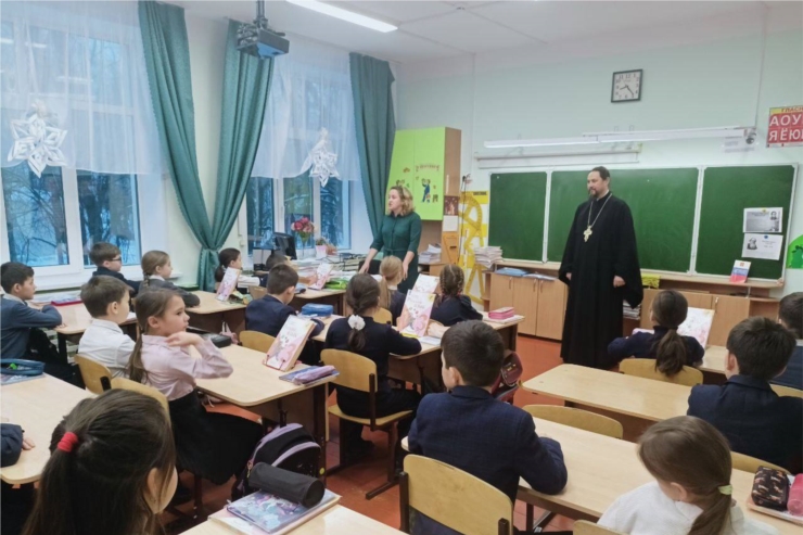 18 декабря 2023 года благочинный V округа Канашской епархии, настоятель храма Тихвинской иконы Божией Матери с. Мусирмы протоиерей Леонид Ермолаев провел для учащихся 3 "а" и 3 "в" класса МАОУ "Урмарская СОШ им. Г. Е. Егорова" неурочные занятия «Разговоры о важном» по теме «Герои нашего времени».