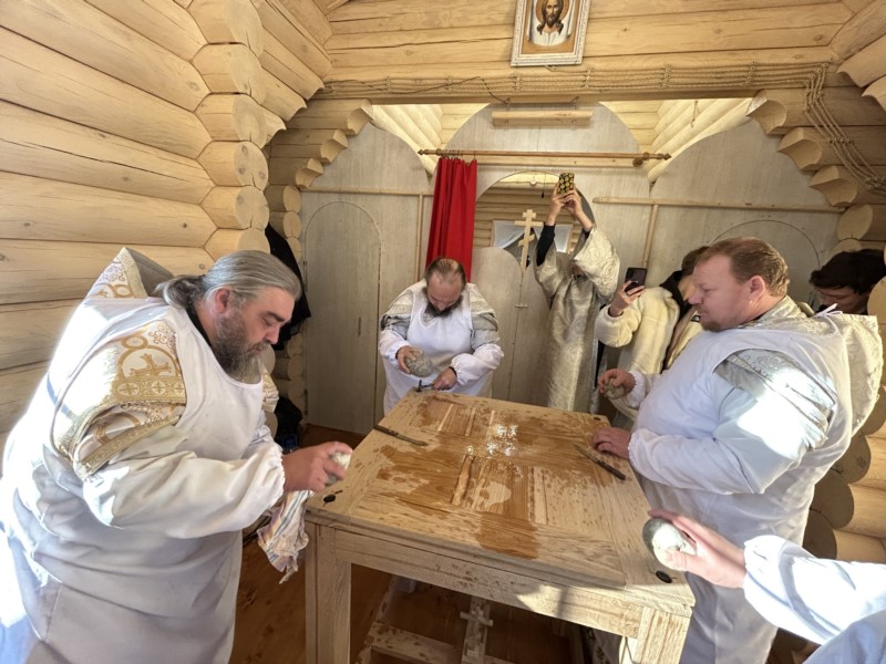 19 августа 2023 года, в праздник Преображения Господня, благочинный округа совершил чин освящения пяти крестов с куполами на строящийся храм.