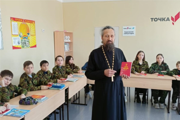 15 февраля 2023 года, сотрудник миссионерского отдела, помощник благочинного II округа, настоятель храма святителя Николая с. Турмыши Янтиковского района иерей Леонид Бараматов поздравил учащихся Турмышской СОШ с днем православной молодежи и раздал Евангелия на русском языке.