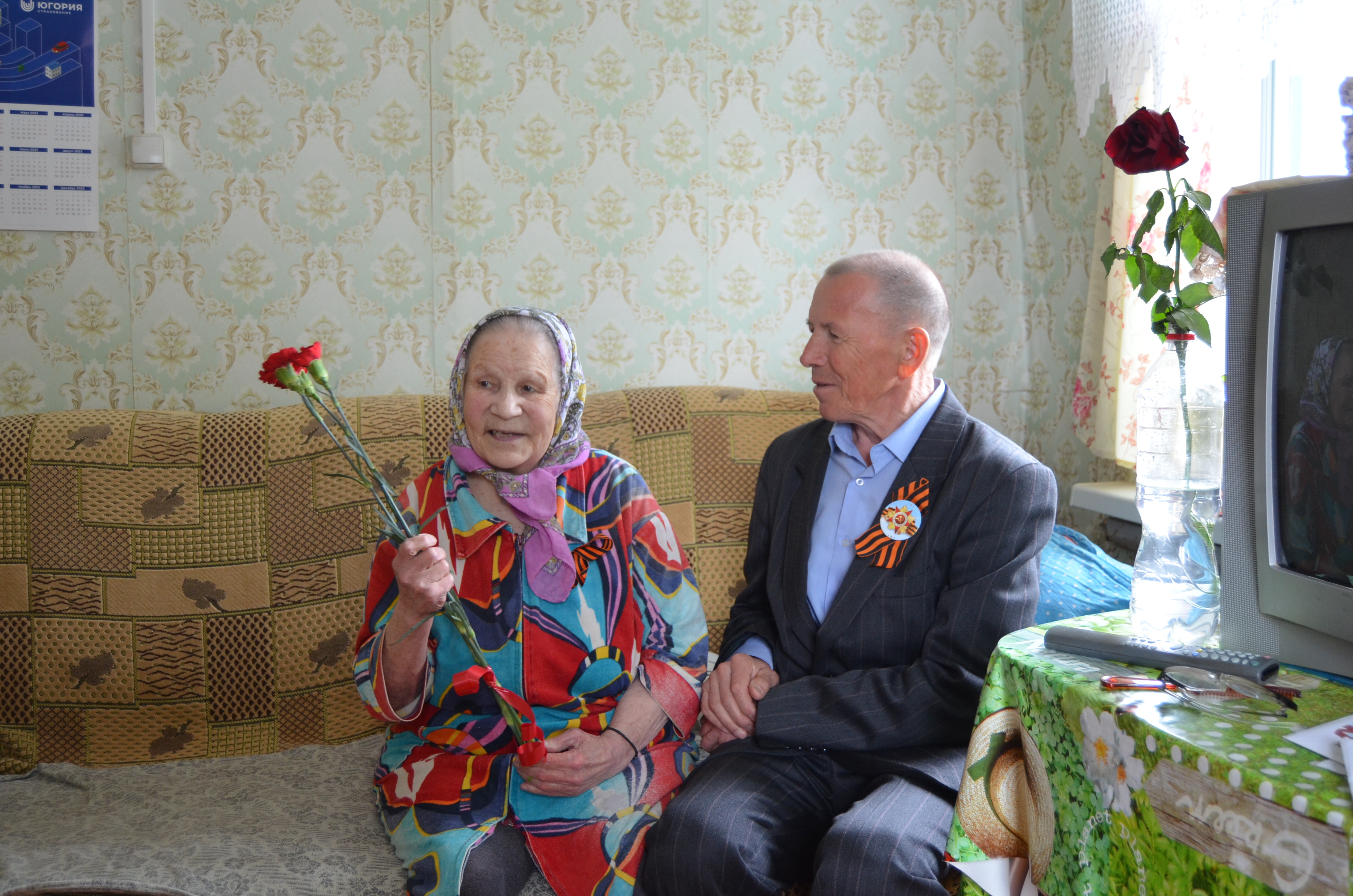 Поздравили с наступающим Днём Победы, пожелали здоровья, вручили цветы.