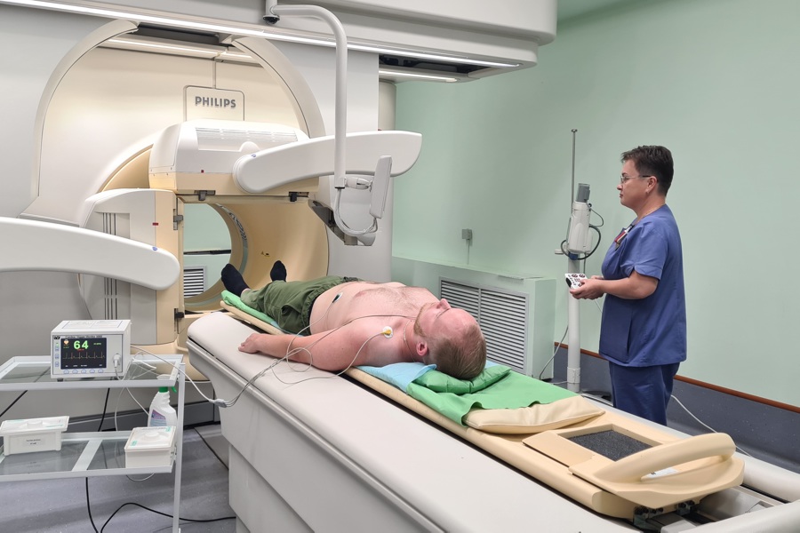 «На данный момент мы проводим сцинтиграфию миокарда в покое , - рассказывает заведующий отделением радионуклидной диагностики онкодиспансера Павел Герасимов. – Исследование позволяет увидеть зоны перенесенного инфаркта, особенно в случае неопределенного результата по УЗИ сердца и ЭКГ. Уникальные возможности предоставляет данный метод обследования при решении вопроса о допуске пациентов к различным некардиохирургическим операциям с позиции оценки риска развития сердечно-сосудистых осложнений. Перфузионная сцинтиграфия позволяет оценить результаты проведенного кардиохирургического лечения: проходимость шунтов к коронарным артериям, эффективность тромболитической терапии и ангиопластики. Значительные диагностические возможности представляет перфузионная ОФЭКТ при остром инфаркте миокарда и нестабильной стенокардии при повторяющемся болевом синдроме, неинформативной ЭКГ и неопределенных биохимических маркерах повреждения сердечной мышцы. И, наконец, впервые в Чувашии внедряется в практику возможность проведения сцинтиграфии миокарда для подтверждения диагноза амилоидной кардиомиопатии – заболевания, при котором развивается быстропрогрессирующая сердечная недостаточность, неподдающаяся стандартной терапии».