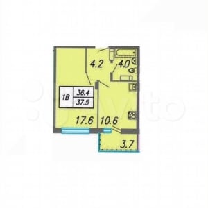 - Общая площадь: 37.4 м²