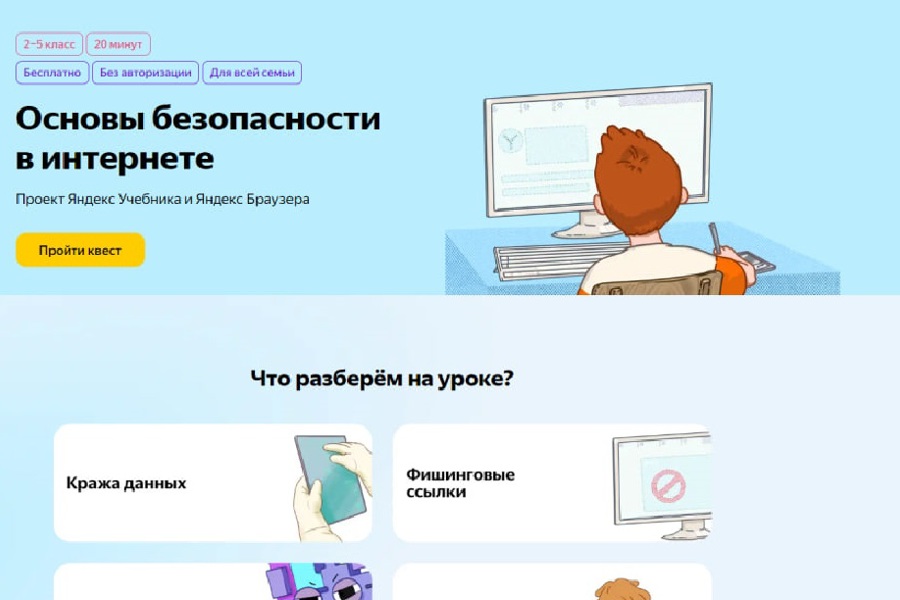 Бесплатный образовательный квест для учеников 2–5 классов, который в игровой форме познакомит школьников и их родителей с правилами безопасного использования интернета, можно будет пройти до 18 июня по ссылке: