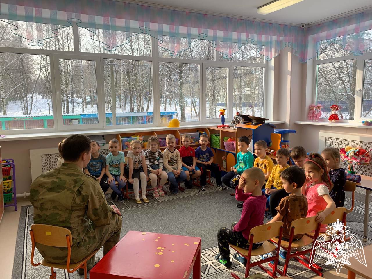 Сотрудник спецподразделения Росгвардии рассказал о Дне защитника отечества воспитанникам чебоксарского детского сада