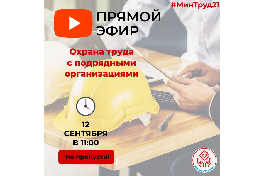 Министерство труда и социальной защиты Чувашской Республики приглашает принять участие 12 сентября 2023 г. в 11.00 часов в «прямой линии» по теме: «Охрана труда с подрядными организациями» в группе Минтруда Чувашии в социальной сети «Вконтакте».