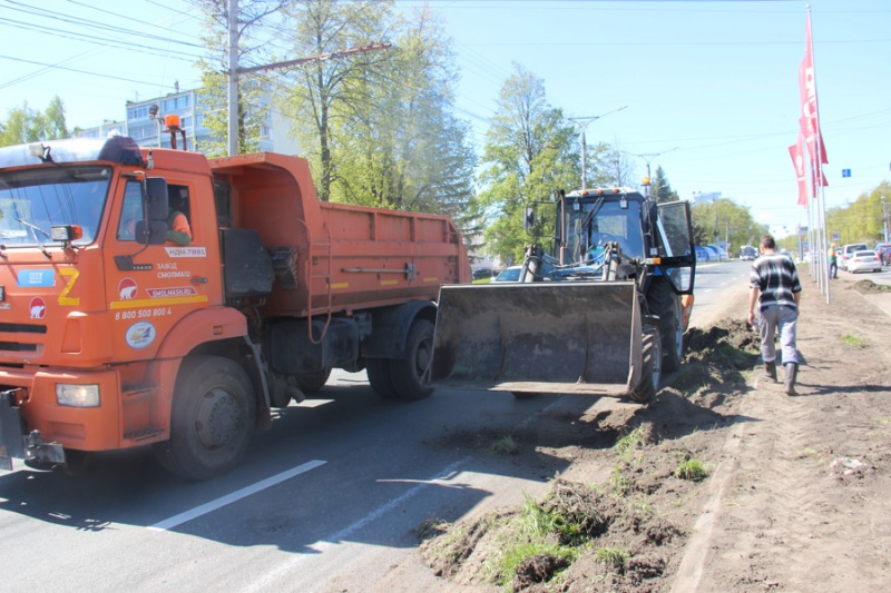 Специалисты АО 'Дорэкс' провели работу по снятию верхнего слоя грунты с разделительной полосы 15 мая, в столице Чувашии, на территории от Московского проспекта до улицы 500-летия Чебоксар,