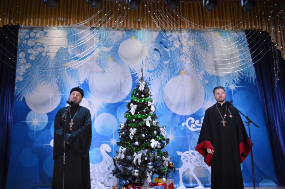 С праздником Рождества Христова собравшихся поздравили глава города Сергей Яргунин , настоятель храма преподобного Серафима Саровского, протоиерей Владимир Ильин и настоятель храма святого апостола и евангелиста Иоанна Богослова, протоиерей Димитрий Нестеренко.