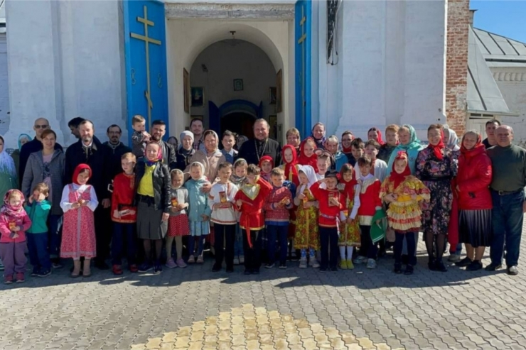 Не остались в стороне и воспитанники воскресной школы. После Божественной литургии в храме в честь иконы Божией Матери "Казанская" г.Мариинский Посад, для всех прихожан, дети рассказали стихотворения и представили пасхальное представление «Курочка Ряба».