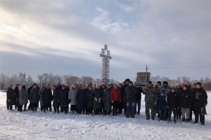 На крестный ход собрались жители села, матери, жены и дети участников Специальной Военной Операции.