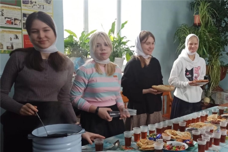 26 февраля 2023 года, в храме в честь иконы Божией Матери "Всех скорбящих радость" города Канаш воспитанниками воскресной школы храма было огранизовано чаепитие для прихожан пришедших на воскресное богослужение. В Прощённое Воскресенье по традиции чаепитие проводится каждый год. Ребята после богослужения угощают прихожан чаем, конфетами, а также блинами собственного приготовления.
