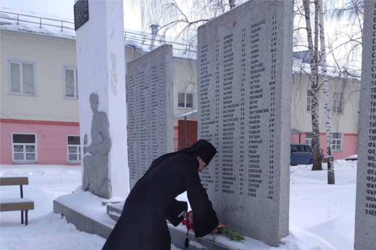 23 февраля 2023 года, в День защитника Отечества настоятель собора Святой Троицы г. Мариинский посад иеромонах Кирилл (Хохолко) и прихожане собора после Божественной литургии отправились к памятнику павшим воинам в Великой Отечественной войне, где возложили цветы к памятнику.