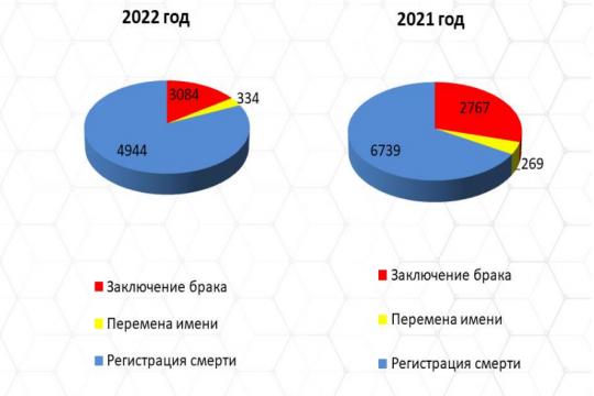 На совещании в администрации столицы Чувашии Чебоксарах начальник городской службы ЗАГС Светлана Валицкая привела данные, согласно которым, в городе рождаемость, хоть и незначительно, но превышает смертность. При этом, обе цифры и печали, и радости одинаково ниже тех же показателей 2021 года. Так, если в 2022 году умерло 4944 человека, то в 2021 году - 6739. И если в 2022 году родилось 5702 чебоксарца, то в 2021 году появилось на свет 6017 горожанина. К сожалению, эту разницу между годами Валицкая не объяснила, но не смотря на похожесть, вряд ли это тенденция.